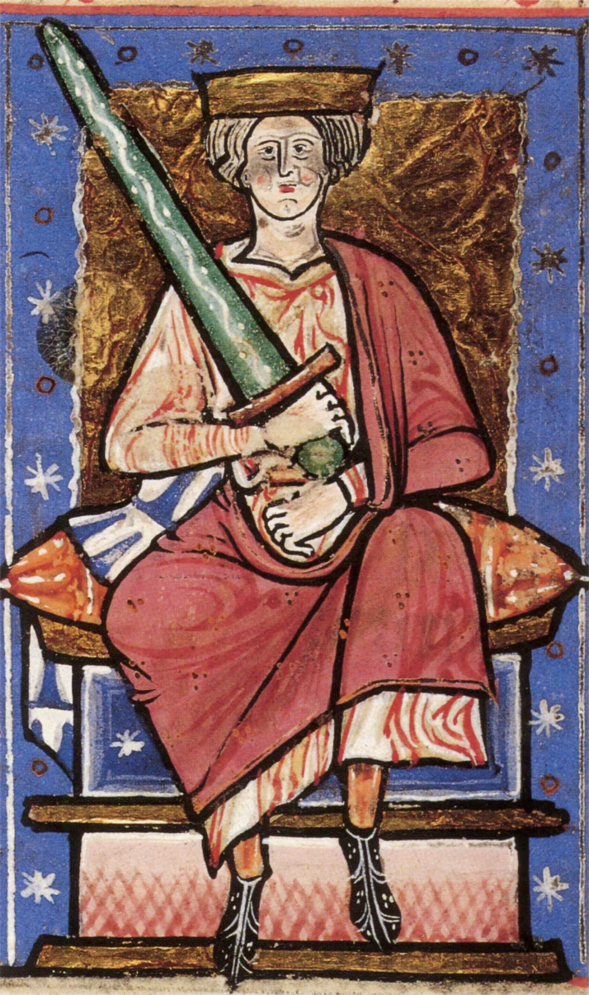 But now Olaf was dead, outnumbered, surrounded and slain at the naval Battle of Svolder in the western Baltic, by his erstwhile ally Forkbeard. Nor was Forkbeard, so cruel that he had driven his own father Harald Bluetooth to death in exile, satisfied to be king of Denmark and Norway. He had turned avaricious eyes toward England, which in those days was seen as the most southerly, warmest part of Scandinavia. Vikings raided right up the Thames, laid waste almost all of Kent, and threatened London, while the Chronicle lamented Aethelred’s feckless response: