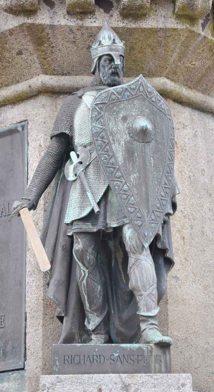 This realm, just across the English Channel (which the Anglo-Saxons called the Sud-see, South Sea) was the dukedom of Richard II of Normaundie, modern Normandy. Unlike the Danes in the Danelaw, however, and more like the Angles and Saxons in England, rather than remain a Scandinavian colony the descendants of Rollo had interbred and assimilated with the local Franks and Celts, becoming vassals of Francia. They stopped being Norsemen and became Normans. Yet they were hardly less warlike than their forebears, and maintained better connections with Scandinavia than with England. Relations between Aethelred and the previous count, Richard I, called Sans-Peur, “the Fearless,” had soured to the point that in AD 991 Pope John XV intervened, sending a legate to bring them to an agreement. By the Peace of Rouen, both agreed not to aid each other’s enemies. In 996, however, both Richard and John died, and as Richard II – the first Norman to be styled as Duke – was still in his minority, his Danish mother and Norman uncle ruled as regents. For them to allow Forkbeard and his Vikings to cross the South Sea, shelter safely in their harbors, and sell their ill-gotten English booty was a violation of the peace.